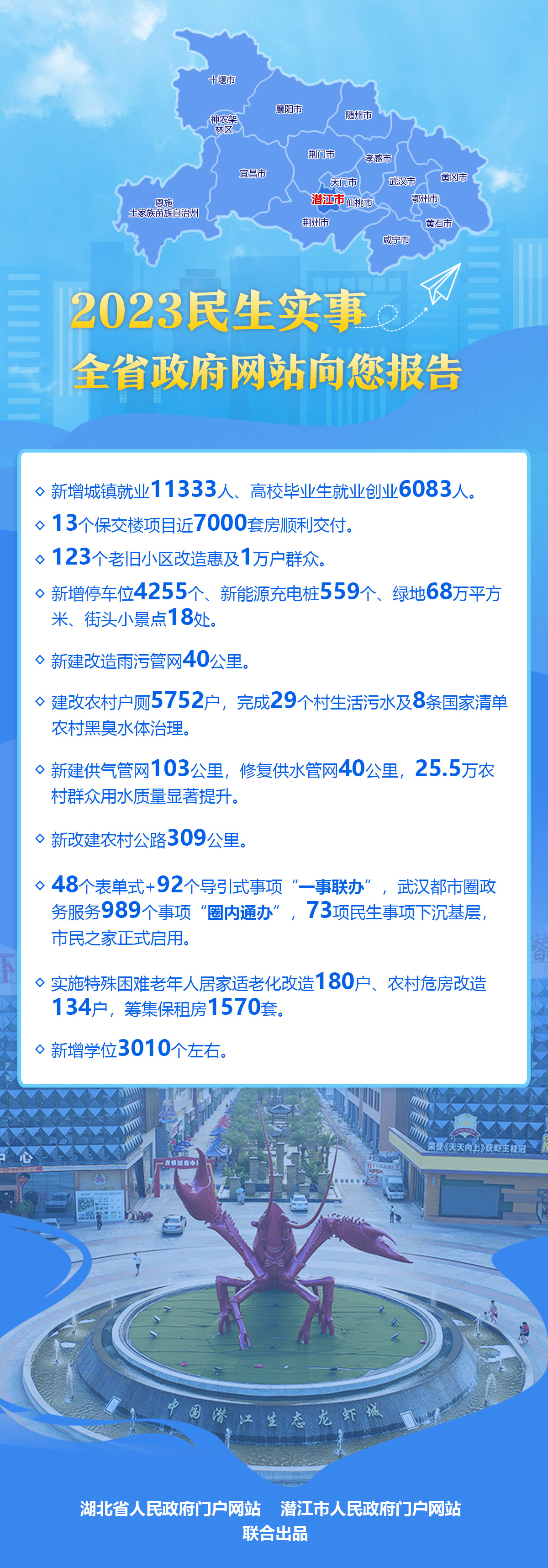 新增婴幼儿托位、建设冬暖夏凉温情教室、老年人居家适老化改造、兴建社区幸福食堂、修好通村公路、开通乡镇公交专线、增加城区停车位和新能源充电桩、改善医疗条件……近期,湖北各地召开的“两会”,陆续公布了2023年民生实事办理情况,全省政府网站将一一向您报告!让我们怀揣共同缔造美好生活的愿景,奔向更加“荆”彩的2024!