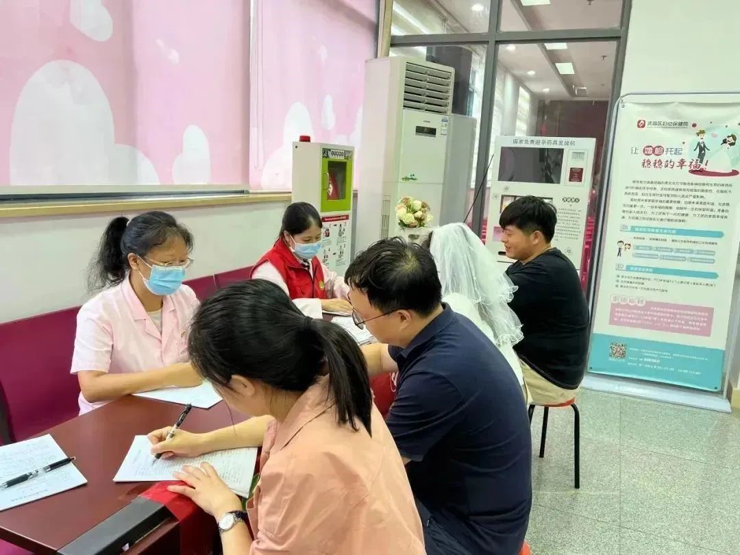 七夕节在辖区婚姻登记处设置便民服务点,为新人提供免费婚检等服务,普及婚育健康知识