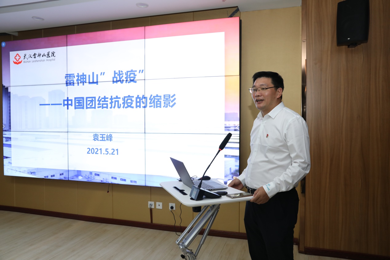 28日上午9点,在黄冈市中心医院行政楼6楼,武汉大学中南医院与黄冈市中心医院的医护人员们联合开展党史学习教育。武汉大学中南医院党委书记、武汉雷神山医院副院长袁玉峰结合自己去年在武汉雷神山医院的抗疫经历,讲授了一堂生动的党课。袁玉峰书记回忆雷神山医院的建设历程,讲述了抗击新冠肺炎疫情中的感人事迹,医务工作者们一边积极救治患者,一边将抗击疫情经验向全球分享,彰显了中国的大国风范,展现了中国共产党的坚强领导力和社会主义制度的显著优势。中南医院医务处处长潘振宇、黄冈市中心医院的领导也结合工作和党史学习的内容,先后进行了党课宣讲。