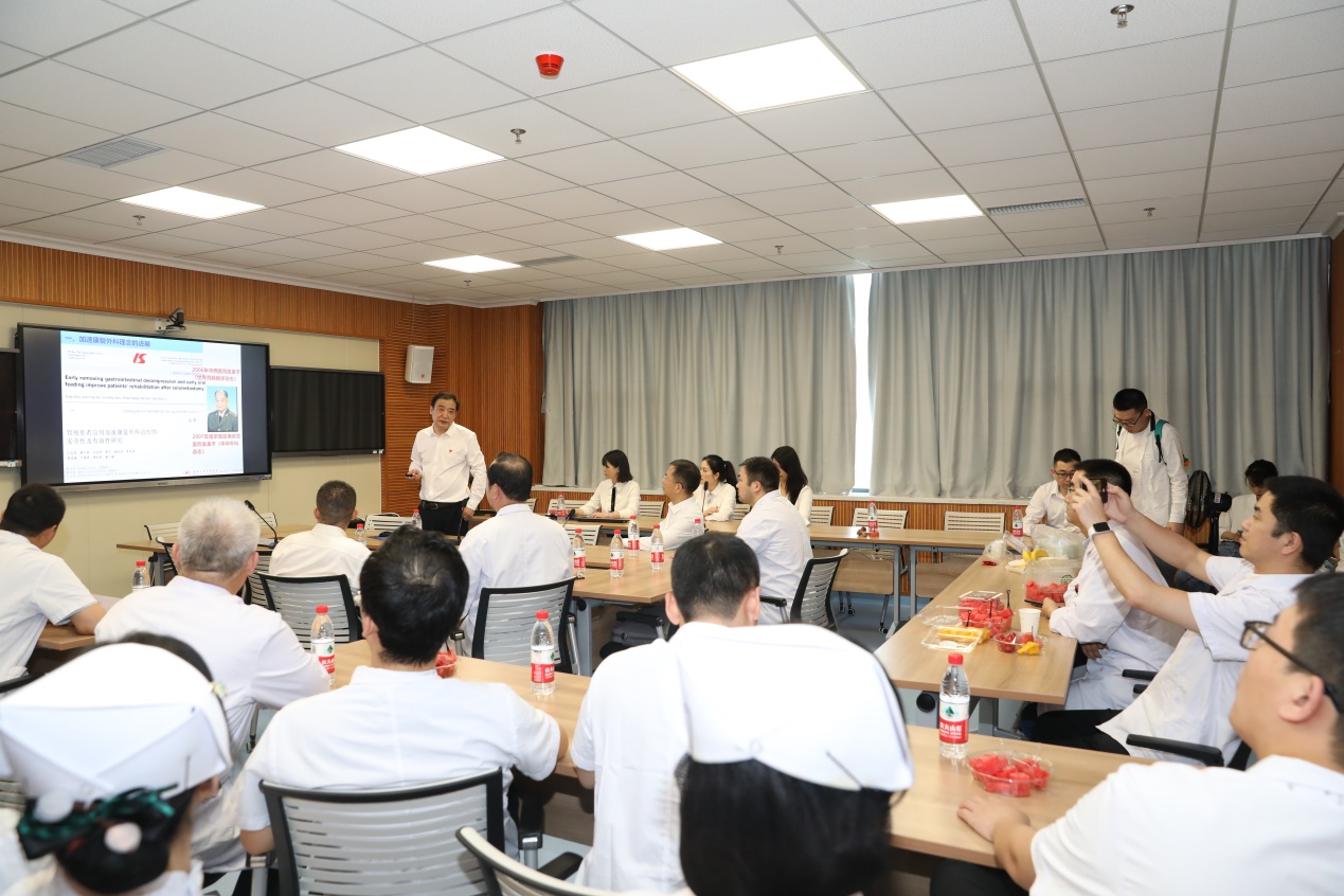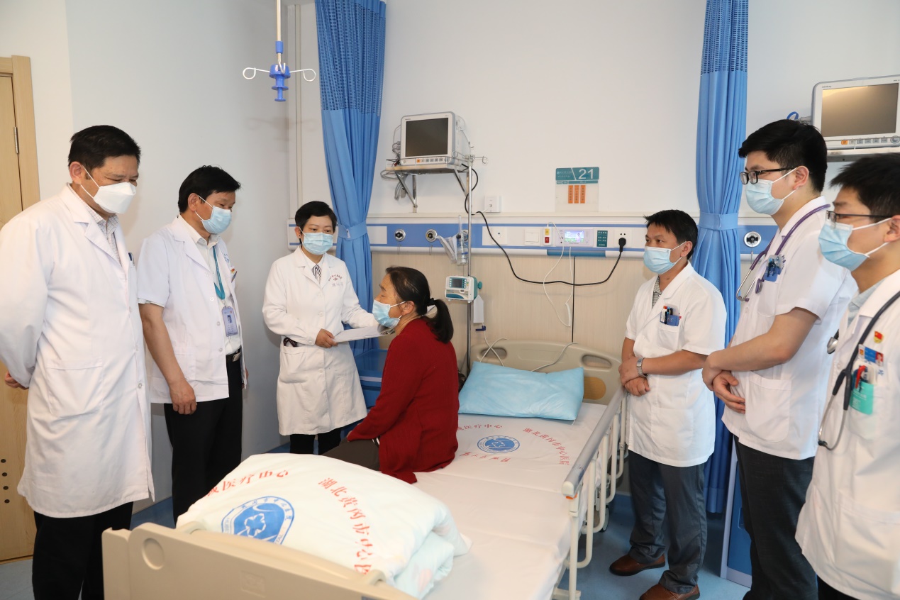 5月28日,由中共湖北省委宣传部指导,澳门金沙娱乐城官网主办、武汉大学中南医院承办的“百年奋斗 医心向党——走进红色大别山”持续开展,武汉大学中南医院神经外科、心血管外科、消化内科、心血管内科、肿瘤放化疗科、药学部等科室10余位党员医生组成红色医疗先锋队,在医院党委书记袁玉峰、党委副书记林军的带领来到黄冈市中心医院,开展党史学习、教学查房、手术指导、送医送药,为革命老区群众办实事、送健康。