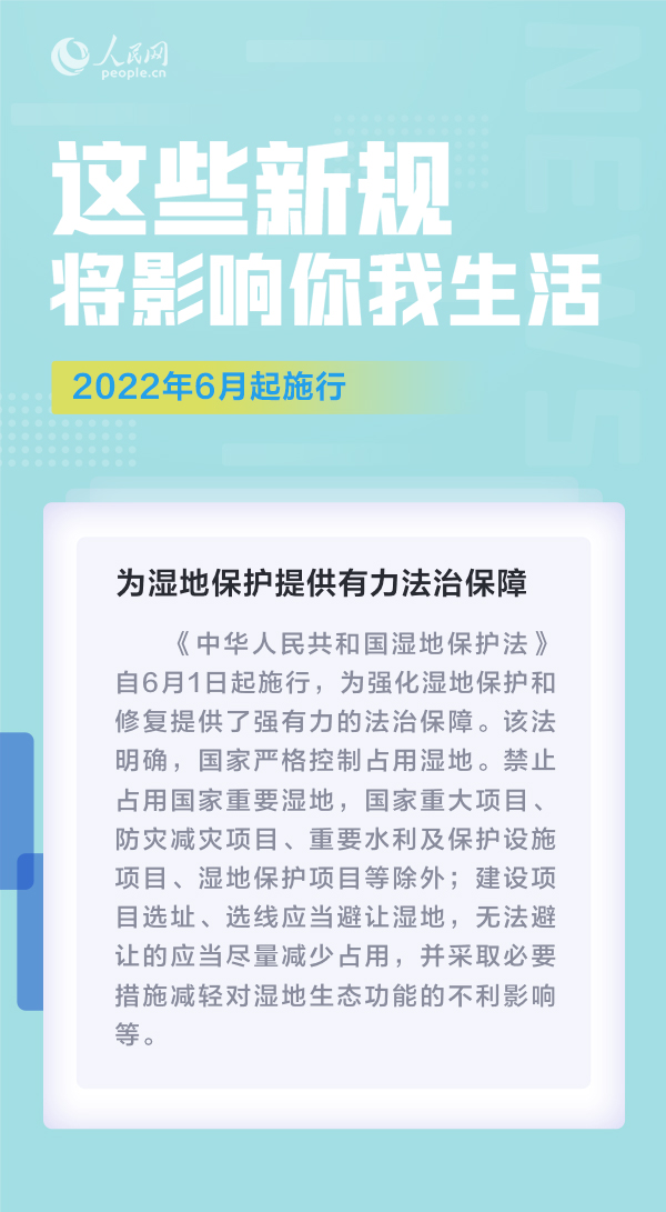 湿地保护有了强有力的法治保障,有针对性地解决社会生活噪声突出问题,固体饮料质量安全监管加强......6月,这些新规实施,将影响你我生活。