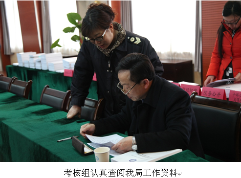 委考核组一行听取我局2014年述职述廉工作报告,开展党风廉政建设责任制民主测评、领导班子和领导干部民主测评,与部分干部职工进行考核谈话,现场查阅我局工作资料情况,对我局各项工作进行了全面考评。