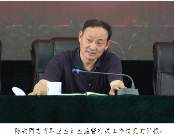 陈锐同志首先听取了白亦兵局长对我局的基本情况、近年来我省卫生计生综合监督执法工作取得的成果和今后的发展方向所做的简要汇报。他对我局和我省卫生计生综合监督执法工作给予了高度肯定。