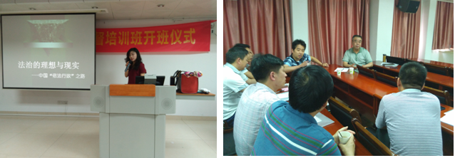 省卫生计生委综合监督局局长白亦兵、副局长吴廉,广州中山大学公共卫生学院书记韩玲、副书记杨德胜,广东省副所长卫生监督所林矛参加开班仪式。白亦兵局长在开班仪式上指出,当前加快推动我省卫生计生综合监督体系发展的当务之急是要加强人才队伍建设,培养精通卫生计生监督业务、法律法规和现代管理知识的复合型领导干部,要求参训人员要珍惜学习机会,严格按照中央八项规定和省委“六条意见”等有关要求,自觉遵守培训纪律,专心学习,潜心思考卫生计生综合监督机构的发展定位,进一步认识新常态,适应新常态。