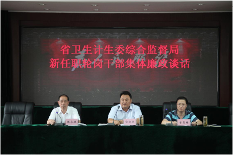 7月1日,为了进一步落实党风廉政建设责任制,增强党员领导干部廉洁自律意识,省卫生计生委综合监督局以干部集体廉政谈话的形式庆祝中国共产党建党94周年。局党委成员、今年新提任和工作轮岗的20余名中层干部参加此次集体廉政谈话,办公室、党办、监察室、人事处主要负责人列席。