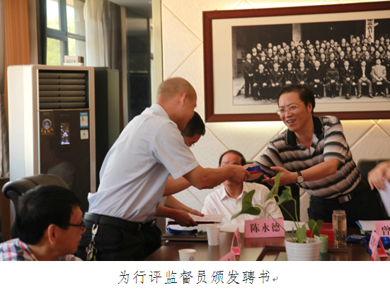 会上,曾秀林同志宣读了政风行风监督员聘任通知,陈永德同志为他们颁发了聘书及工作证,并通报了我局履职尽责活动的开展情况。政风行风监督员对受聘担任我局政风行风监督员感到非常高兴,纷纷表示要竭尽所能做好我局政风行风监督工作,为加强监督队伍建设、支持卫生计生综合监督事业发展作出贡献。同时,他们对当前的卫生计生综合监督工作提出了很多宝贵的意见和建议,有的同志提出我局要加强行政许可网的建设、进一步优化办证流程;有的同志反映放射工作从业人员的专业培训与环保部门的要求出现了交叉,建议增进行政部门之间的沟通协调进行互认;有的同志要求我局应及时组织相关企业的人员集中培训国家新颁布的涉水产品等的法规、标准;有的同志指出我局作为洪山区的辖区内单位,在文明创建、党员进社区等活动上,应加强探索与地方、社区的协调和合作等等。