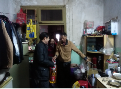 2016年 1月5日,局党委副书记曾秀林等一行,在社区周惠琴等管理员的陪同下,看望了进金桥社区的3位困难家庭,并带去了油和米等物质。曾秀林每到一户都与他们亲切交谈、了解困难户现状、生活中遇到的困难,真诚倾听他们的心声和建议、鼓励他们保持积极的心态,战胜各自面临的不同困难,让困难群众切实体会到党和人民对他们的关怀和温暖,祝愿他们过一个幸福祥和的春节。
