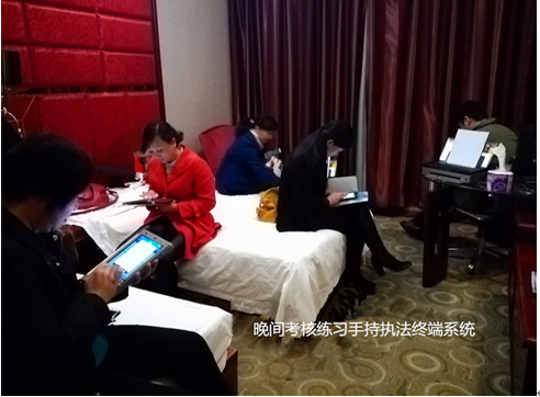 培训班将卫生监督业务系统和手持移动执法终端操作应用作为重点培训内容,旨在为全省培养一支卫生计生综合监督信息化推广应用的师资队伍。按照培训计划,学员们白天集中听取卫生行政许可审批系统、卫生监督处罚系统、执法终端使用等授课讲解和演示,晚间则进行分组操作练习,并接受一对一的现场考核。培训班坚持从严从实的原则,要求学员当天消化学习内容、当天完成系统流程运行和考核,学习时间紧、内容多、强度大、要求高,这反而激发了大家的学习热情。学员们互帮互学,反复操作演练,逐一解决问题,每天都按要求完成了各个系统的操作流程及考核,经常有学员练习、考试到凌晨一两点,早上八点钟依然按时进入下一个培训课堂。目睹这种学习氛围,应邀前来授课的专家都感叹不已,直言这是少见的紧张、高效的专业培训,学员们不怕吃苦、认真学习、努力钻研的精神值得表扬。