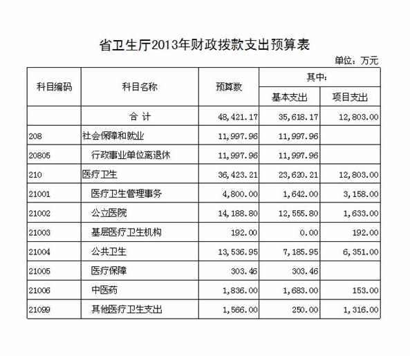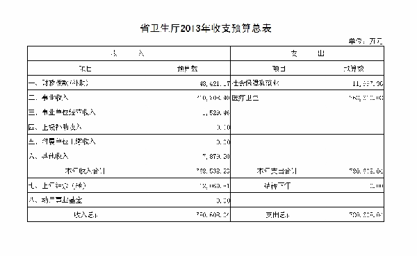 湖北省卫生厅2013年部门预算公开信息