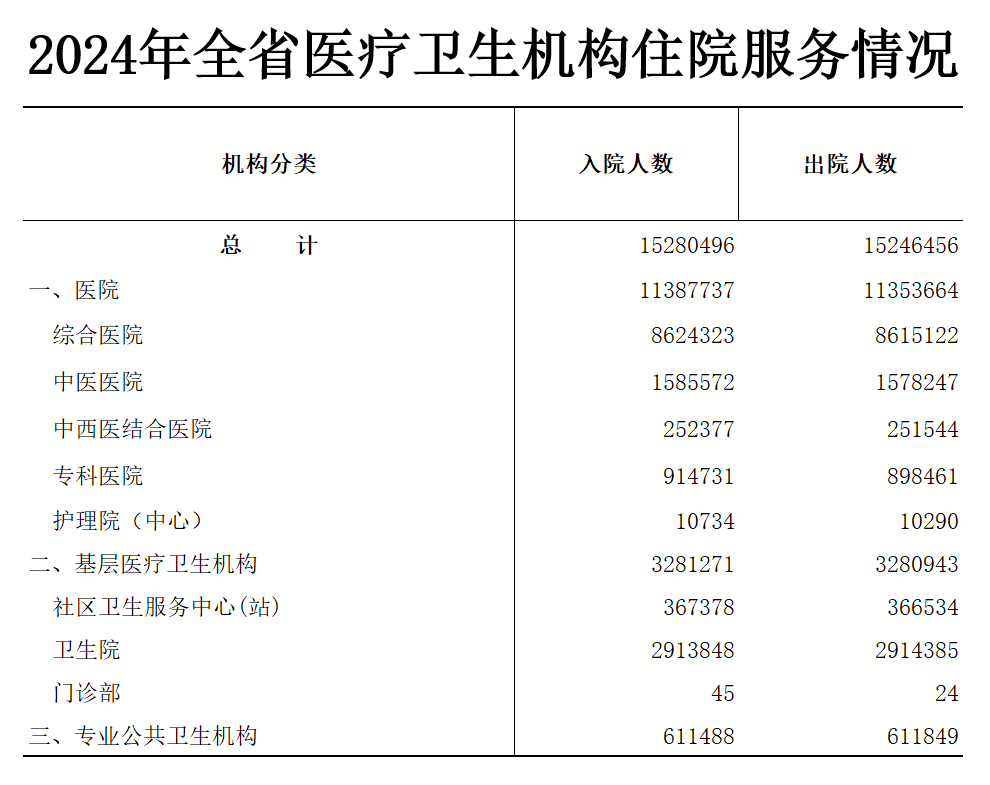 2024年全省医疗卫生机构住院服务情况-澳门金沙娱乐城官网